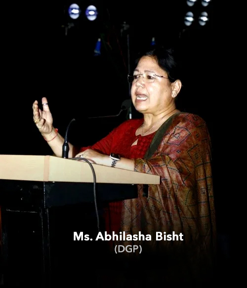 The Chief Guest was Ms. Abhilasha Bisht. A native of Dehradun, Ms. Abhilasha Bisht, holds an Honours Degree in Political Science from Delhi University, Master’s Degree in Political International Studies and M. Phil. Degree in International Politics, Organization and Disarmament Studies from JNU. Ms. Bisht is Director General of Police and Director, Telangana Police Academy.